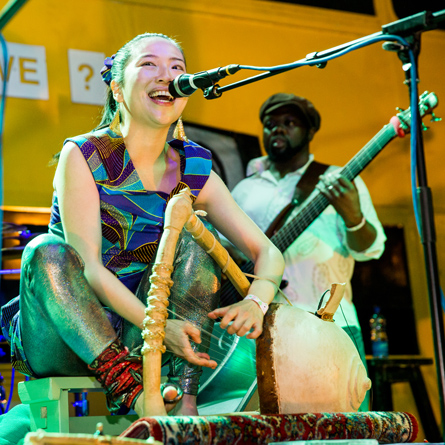 Over the years Anyango has been closely associated with Ketebul Music, both socially and business-wise. Apart from her beautiful voice and her incredible nyatiti playing skills, she possesses a lively and jovial spirit, always surprising people by her ability to speak Swahili and Luo.